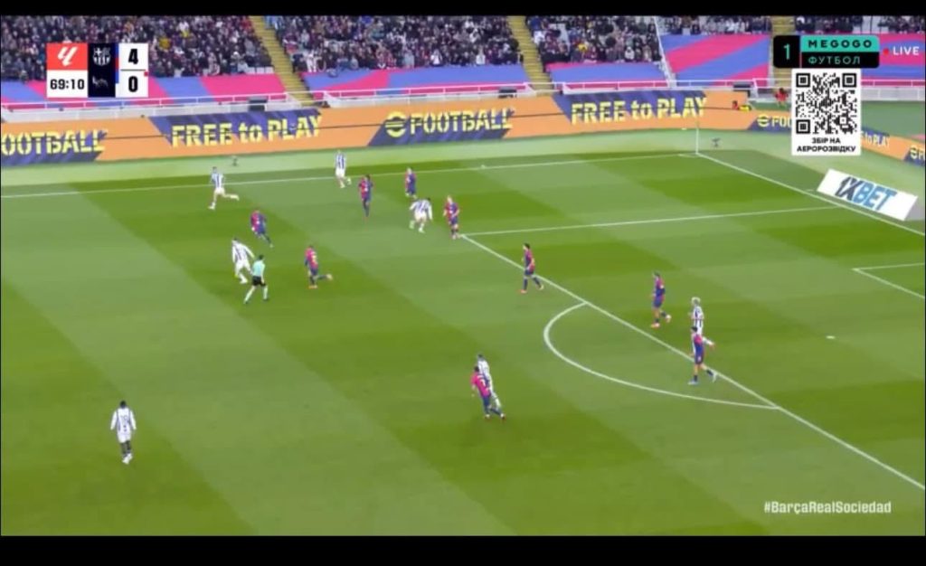 ደጋፊ ምስል- ትላንት ባርሴሎና በአንድ ሰው ቁጥር ብልጫ እና አራት ለ ምንም እየመራ በ low block የሚከላከልበት አደረጃጀት ነው::