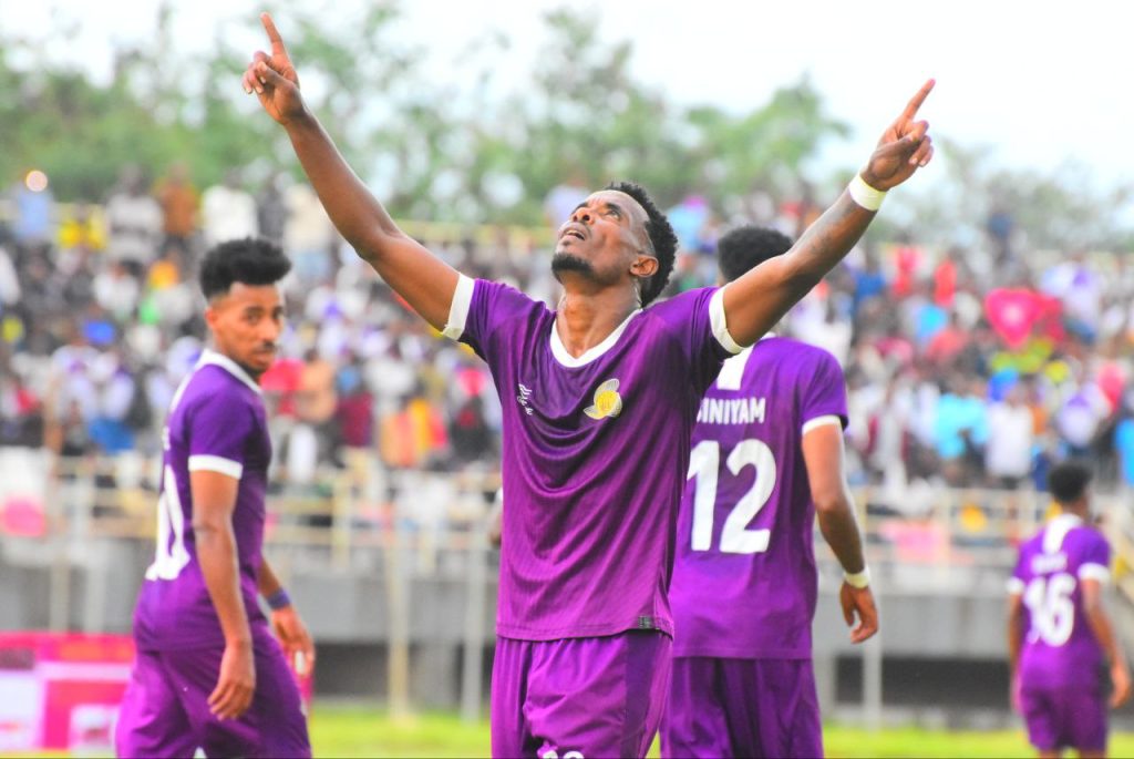 Addis Gidey celebrates giving Nigid Bank a 2-0 lead- EPSC
