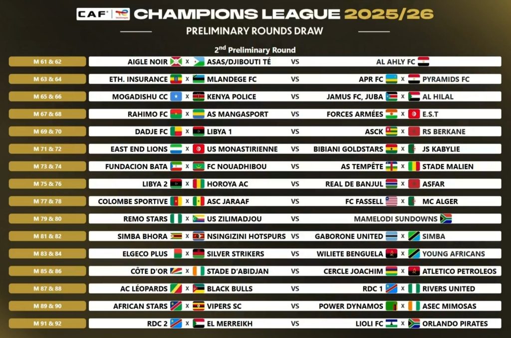 ኢትዮጵያ መድን አሸናፊ ከሆኑ በሁለተኛው ዙር ከፒራሚድስ እና “APR” አሸናፊ ጋር ይጫወታሉ።